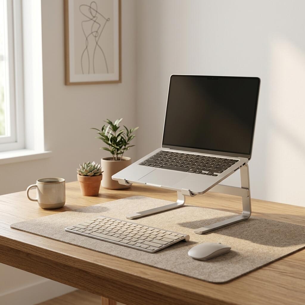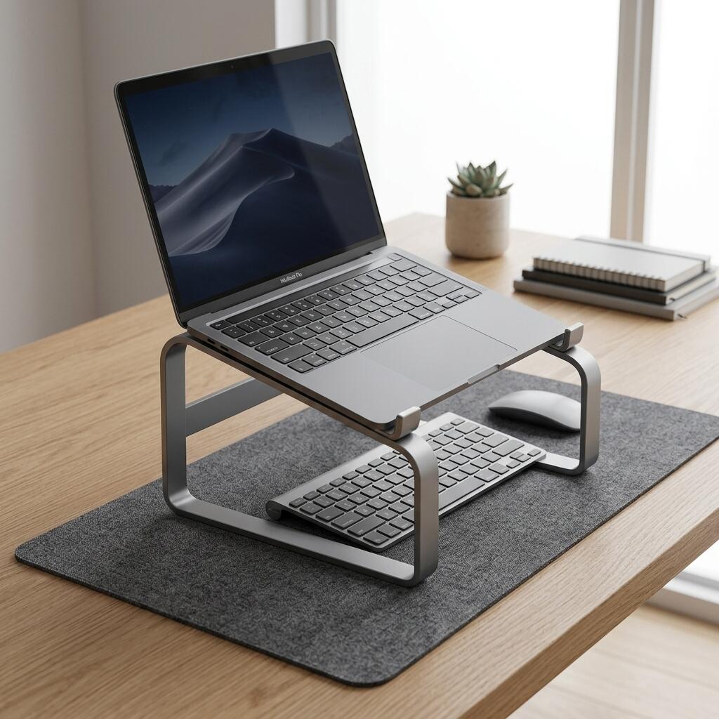 Elevate your workspace with the TidySetup Aluminum Laptop Stand. High-end aerospace aluminum for ergonomic health and passive cooling.